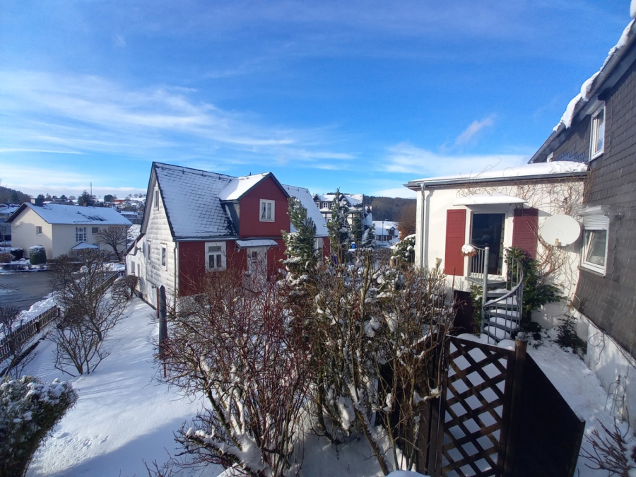 Die Ferienwohnung hat eine eigene Terrasse in Süd-West Lage und ist über eine Spindeltreppe von der Küche aus erreichbar.